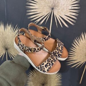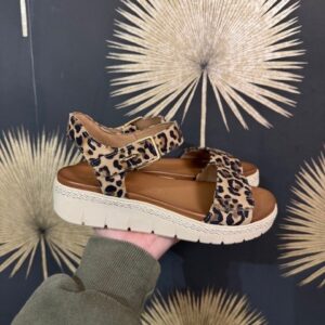 Sandalo tamaris leopardato con zeppa bassa e velcro